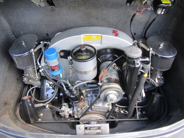 During restoration it was decided to give this 356C more power by installing a 912 engine with Weber Carburetors. This engine is estimated to produce a 110 horsepower with an excellent wide torque band. The suspension has been lowered slightly both front and rear to ensure excellent handling. Factory options include, Chrome Wheels, Factory Amber Driving Lamps as well as the desirable Factory Headrest Option.