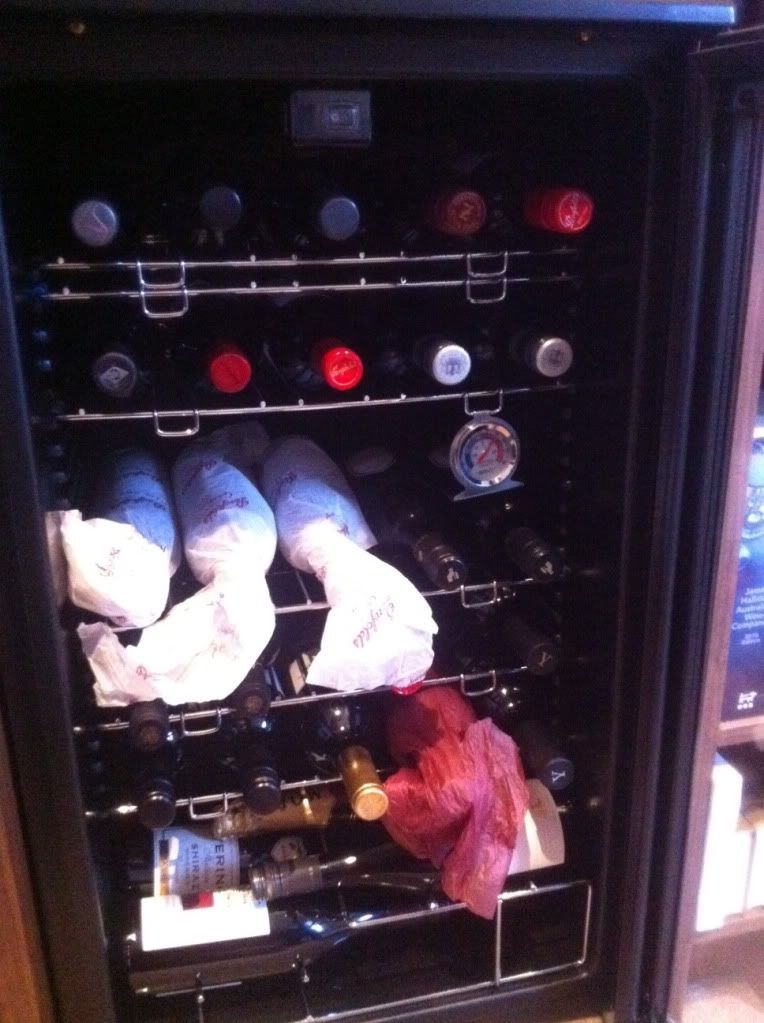 This is Dads office fridge, with mutlipile different wines including a couple Grange 2003,2005,2006