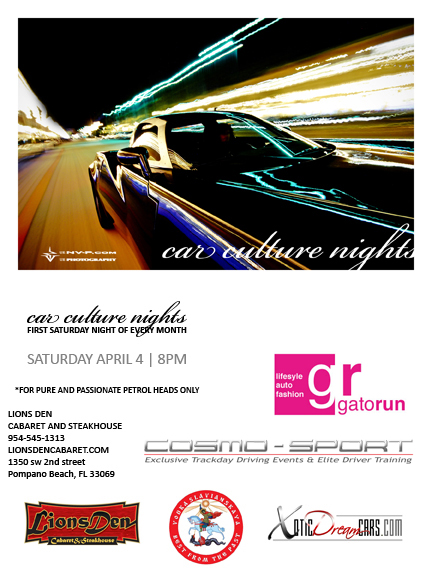 Car Culture Nights Saturday April 4th Pompano Lions Den Lambos Vipers More