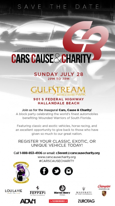 Sunday July 28th "Cars, Cause and Charity" Car Show @ Gulfstream Park