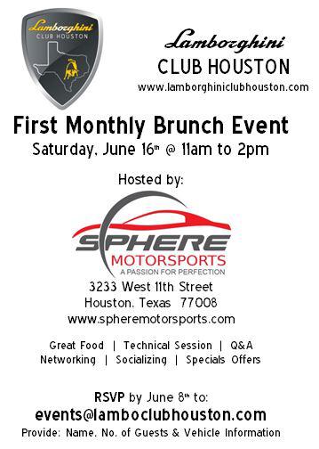 Lamborghini Club Houston event June 16th at Sphere Motorsports
