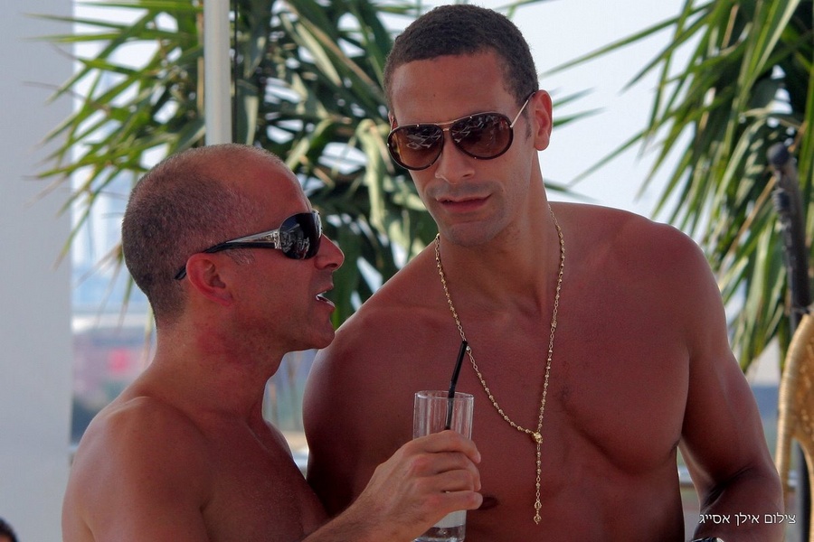 Just thought I would post up a couple pics. My brother chilled with Ferdinands 50 person crew on the beach in Ashdod Israel at our friends restaurant. My brother was literally wearing a Chelsea Lampard 8 jersey and Rio asked politely to take it off for the picture, just to make sure Abramovich didn't place a bid on Rio's head I assume. LOL.