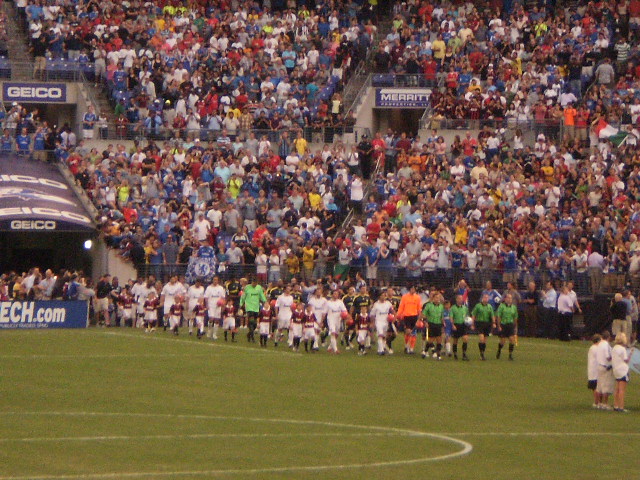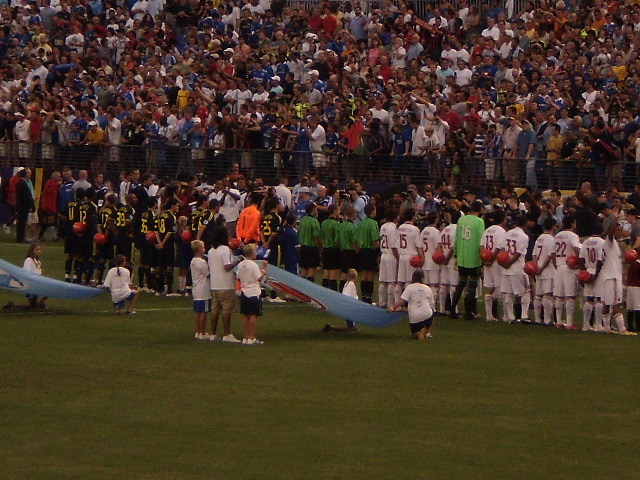 The biggest cheers of the night were definately for Onyewu. As soon as he wrapped up his warm-up exercises and started heading for the sidelines the crowd started going nuts.