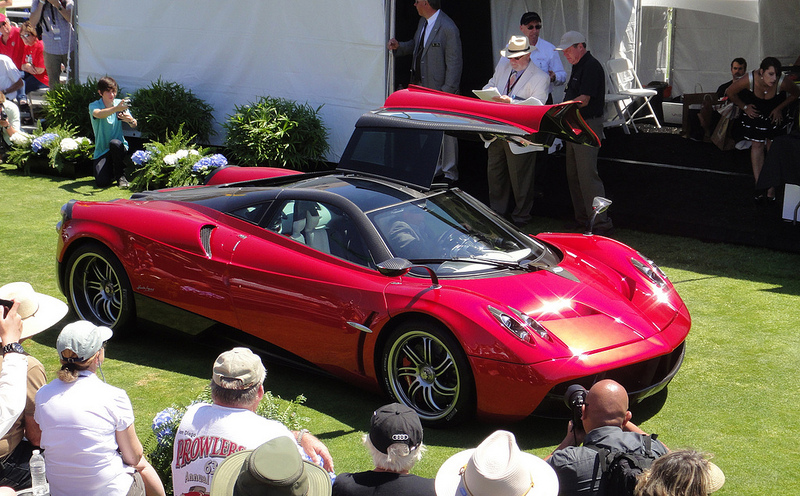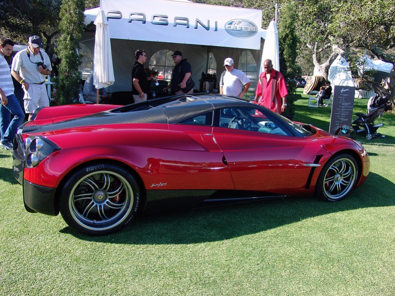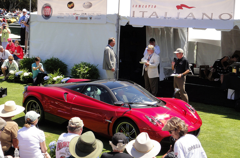 Pagani Huayra, driven by Mr. Pagani hilmself. Concorso Italiano Laguna Seca Golf Course, near Monterey California.