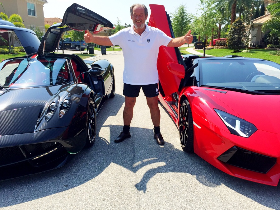 Here is Valentino Balboni with the Pagani Huayra La Monza Lisa and @LP_LAMBO_ 's one of a kind Diablo Rosso Lamborghini Aventador Roadster! What an amazing day!!