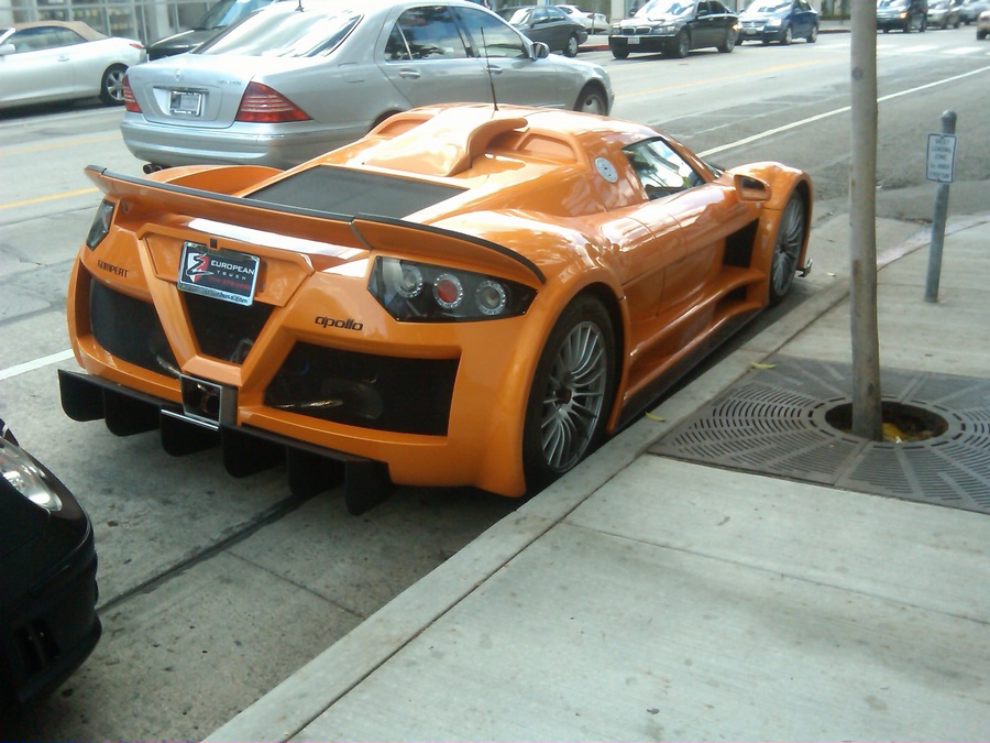 I spotted this apollo while driving through West Hollywood parked at a cafe's valet. I pulled over to take a closer look at the car and took a few pictures on my blackberry as well. I also realized that it was the same apollo that I had been driving next to on the freeway just a week before, but was unable to get a picture of it before because I was weaving through traffic in order to keep up with it in my black series. Thought I'd share these pics because of how rare it is to see this car on the streets, even living in LA.