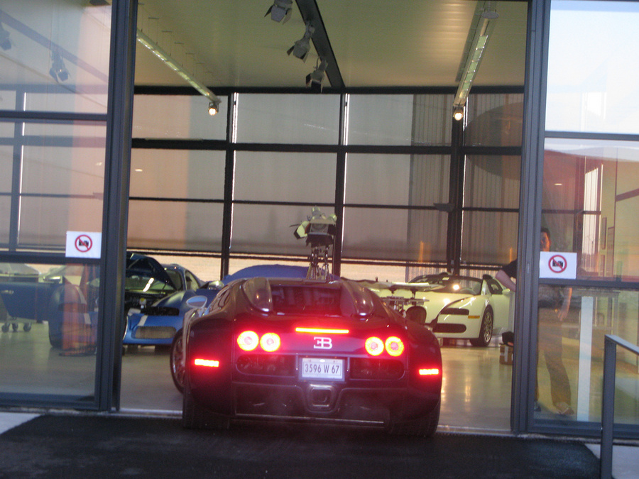 I have found amazing photostream at flickr about visit to Bugatti factory. At the reception there is another one-of-a-kind Veyron with CF work similar as on Pur Sang and Sang Noir limited editions and with all black interior, there was also wrapped Pur Sang ready for delivery to the owner. Superb shots.