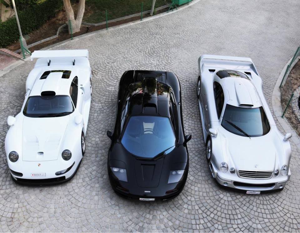 Porsche 993 GT1,Mclaren F1, and Mercedes-Benz CLK GTR AMG.