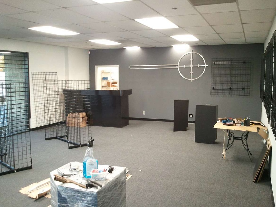 well, another day under the belt and alarms are in, safes installed and the front of the store is done, other than networks and specialized lighting. Starting to take shape and we start the buying and stocking of merchandise other than guns in about two weeks.