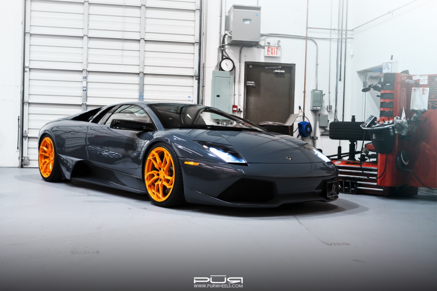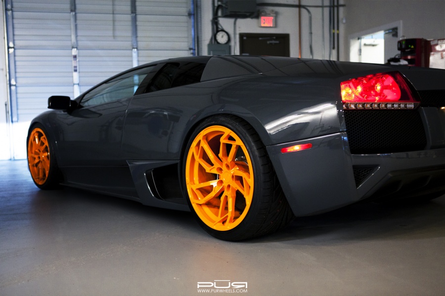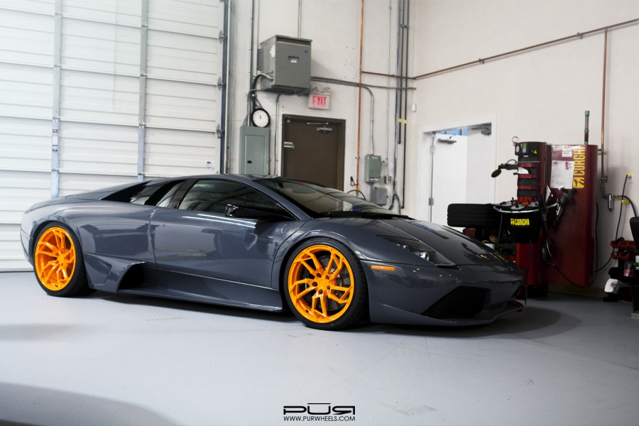 PUR’s feature of the week is a Grigio Telesto, Lamborghini Murcielago LP640sporting a set of PUR RS05’s forged monoblock wheels. The wheels measure 19x8.5front and 20x13 rear and features a custom Arancio Borealis finish.