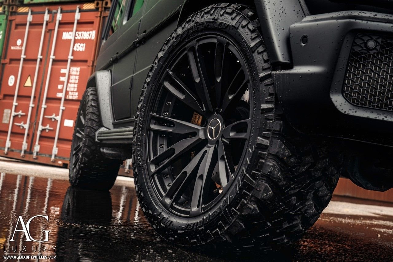 Check out these pics of this Black G63 AMG sitting on Avant Garde AGL50 forged duoblock wheels. Sizes are 22x10.5 all around, finished in Matte Black with Chrome hardware. Enjoy!