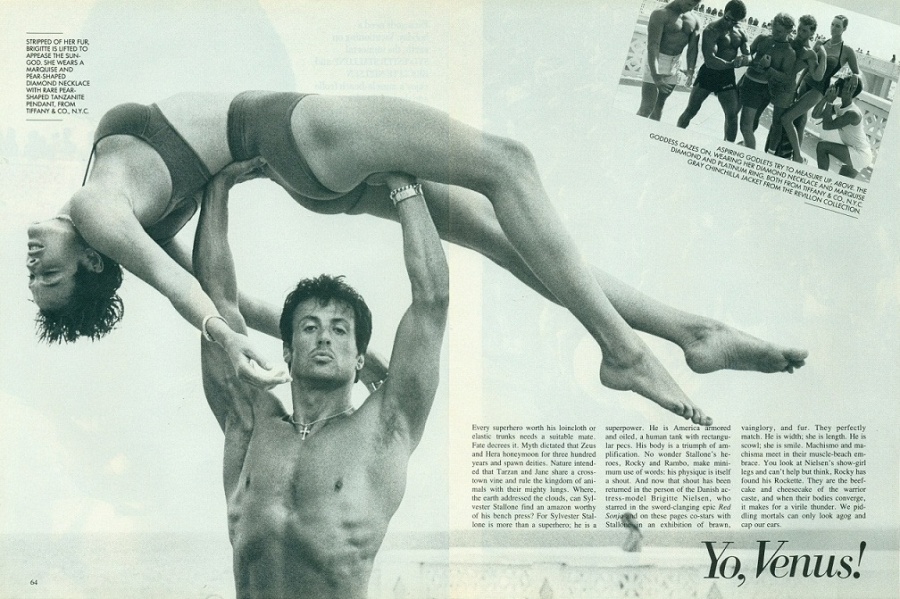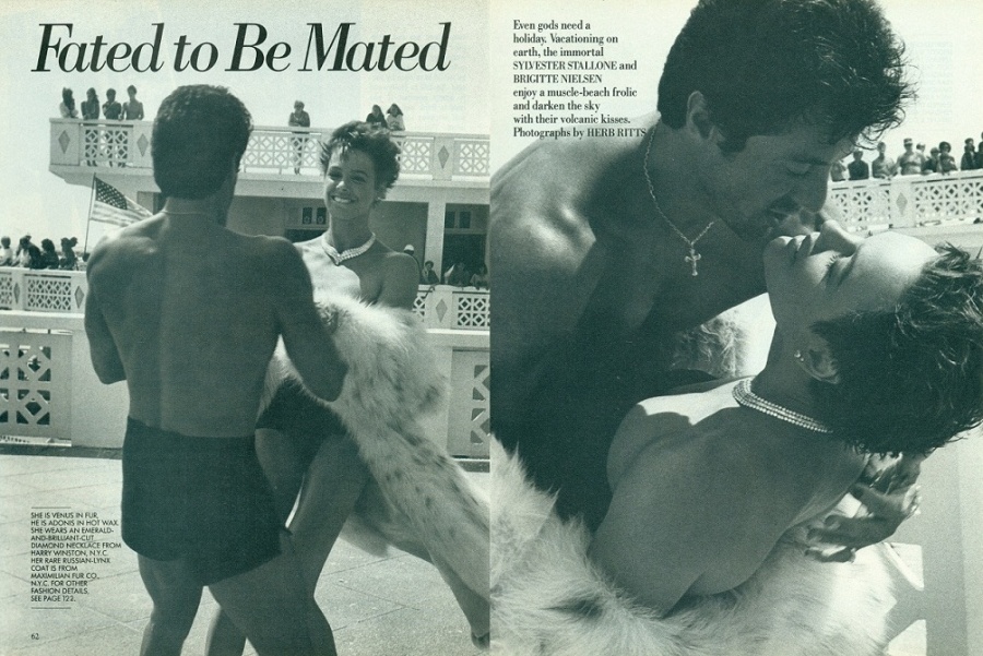 In the Hollywood Brigitte Nielsen is best known for her role in Red Sonja costarring Arnold Schwarzenegger. In that same year she had a part in Rocky IV and caught the eye and heart of its star Sylvester Stallone. They swiftly married and with commendable loyalty he gave his new wife a starring role opposite him in his film Cobra.