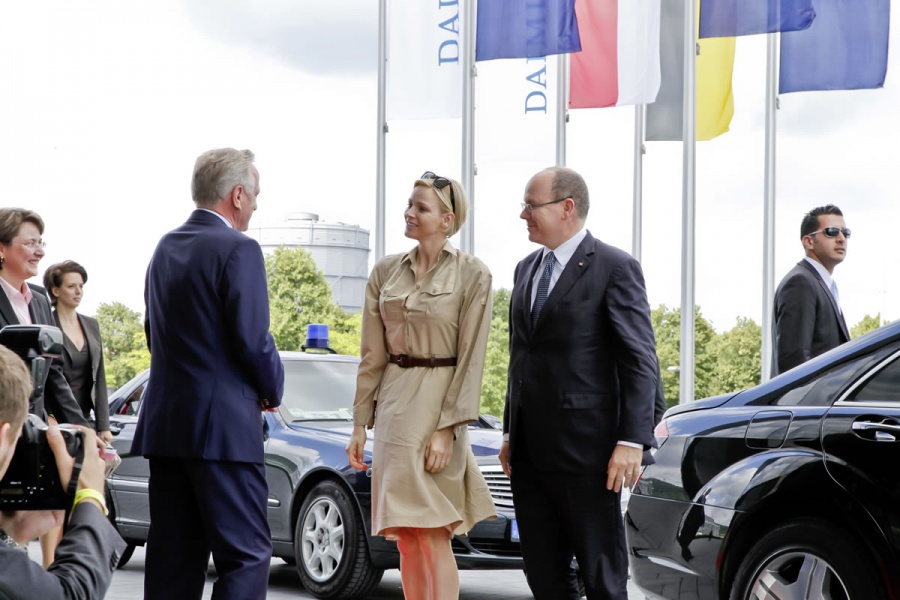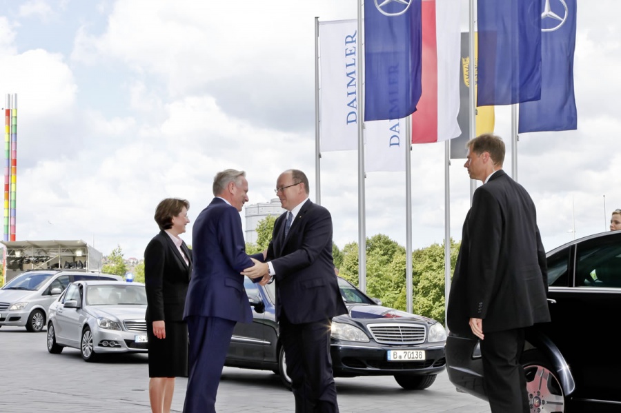 "As part of their two-day visit to Germany, H.S.H Prince Albert II of Monaco and H.S.H. Princess Charlène toured the Mercedes-Benz Museum in Stuttgart. During an exclusive guided tour of the exhibition the princely couple was able to experience a unique journey through time, from the very beginnings of automotive industry and on into the future.