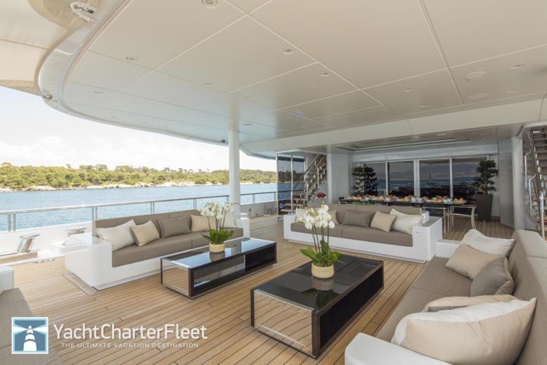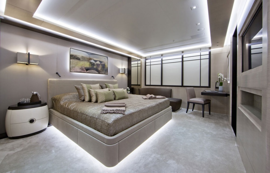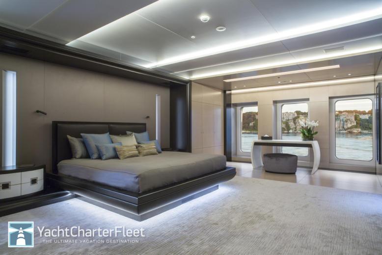 This custom displacement yacht is equipped with an ultra-modern stabilization system which reduces roll motion effect and results in a smoother more enjoyable cruising experience. She features ‘at anchor stabilisers’ which work at zero speed to increase onboard comfort at anchor and on rough waters. With a cruising speed of 14 knots, a maximum speed of 17 knots and a range of 5000nm from her 182000 litre fuel tanks, she is the perfect combination of performance and luxury.