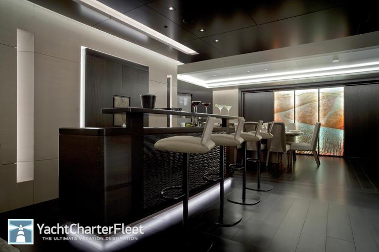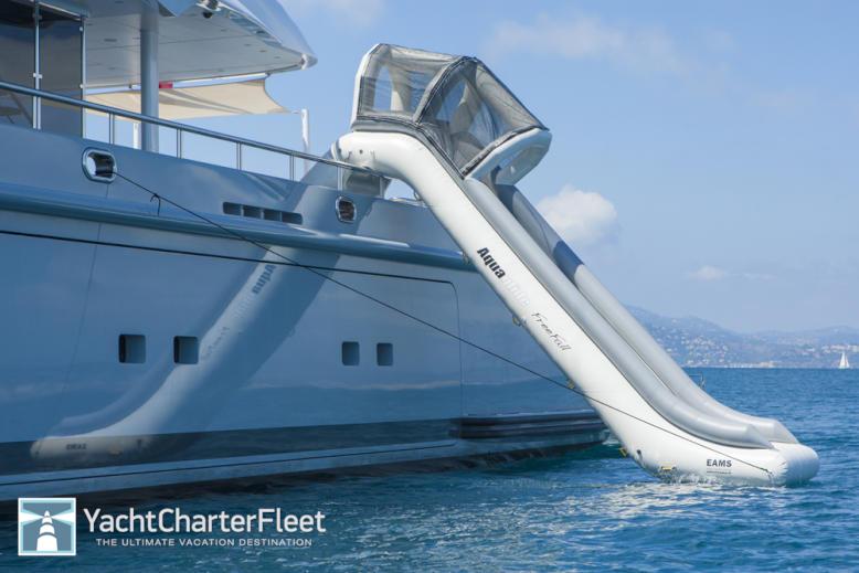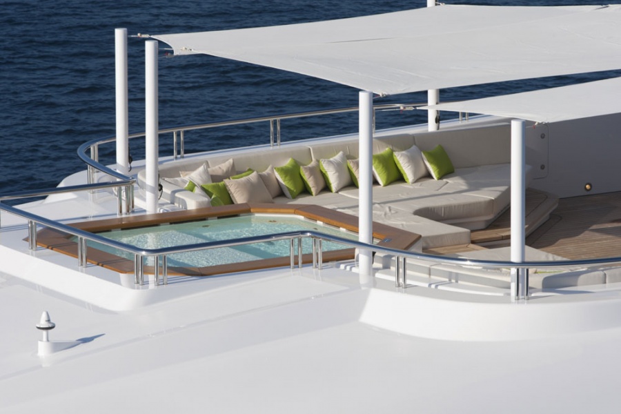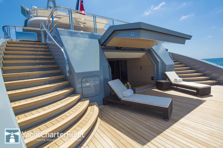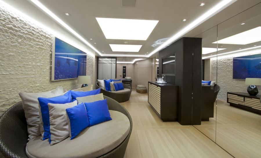 At anchor Stabilizers , Gym, Sauna, Swimming Pool, Beach Club, Swimming Platform, Air Conditioning, Steam room, Massage Room, Jacuzzi (on deck), Lift (Elevator), Tender Garage, Underwater Lights, Air Conditioning, Stabilizers at Anchor, WiFi connection on board, Deck Jacuzzi, Gym/exercise equipment