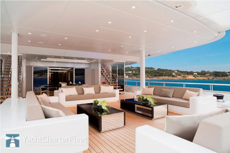 Charter rates are FROM €550,000 p/week + expenses. Mogambo's interior layout sleeps up to 12 guests in 6 staterooms, including a master suite, 4 double cabins, 2 twin cabins, and 2 convertable cabins1 pullman bed. She is also capable of carrying up to 19 crew onboard to ensure a relaxed luxury yacht experience. Timeless styling, beautiful furnishings and sumptuous seating feature throughout her living areas to create an elegant and comfortable atmosphere.