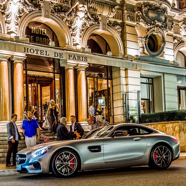 Mercedes ///AMG presented the new GT at the Monaco Yacht show as part of the "designers visions" dinner hosted by celebrity yacht designer Espen Øino! Here the Mercedes-amg GT arrives at Hotel de Paris Monte-Carlo ready for the exclusive showing.