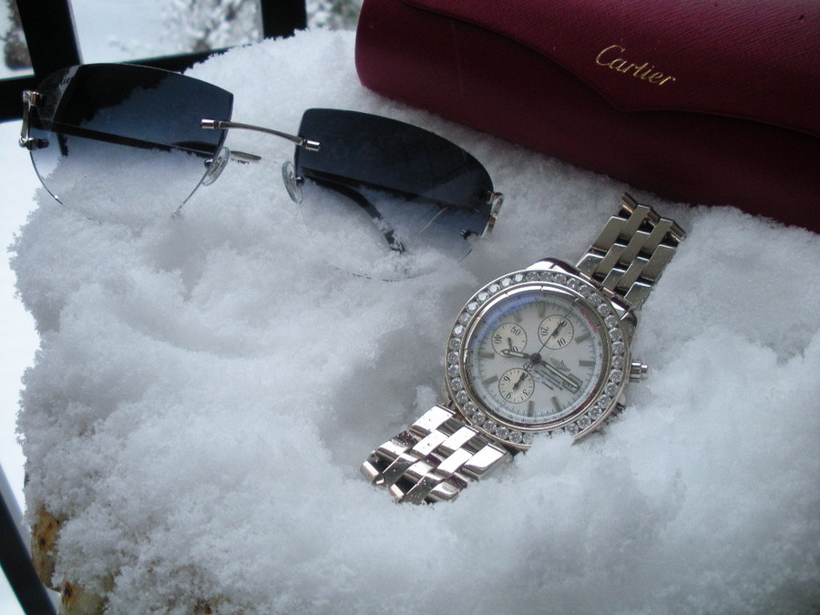 Pretty good combo, not usually a fan of diamonds on men's watches but it pretty good looking with that watch face/style. I really like the creativity of the photo shoot as well.