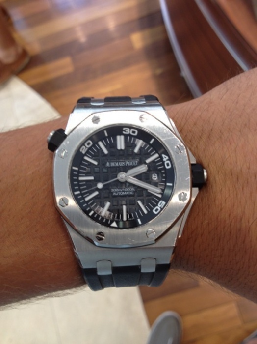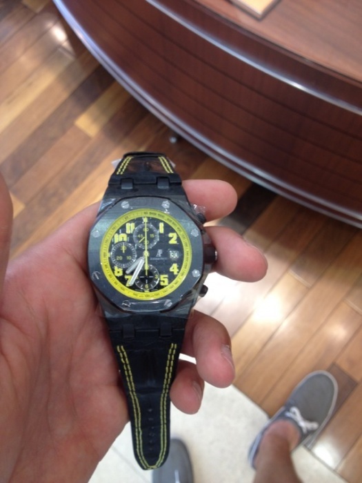 I then tried on the Diver as I know that travisb is a fan of them and wanted to help enable him a bit..even though it seems that submarino did all that work for me:thumbsup: I also tried on the 15300 w/ the blue dial and thought it was great looking watch but the girl that worked there was 23 and said i'm too young for that watch. I appreciated her honestly haha. They also had a bumblebee there which I did not try on but he did take it out of there display in the front of the store and I was amazed at how light it was. The yellow really pops as well without being too much.